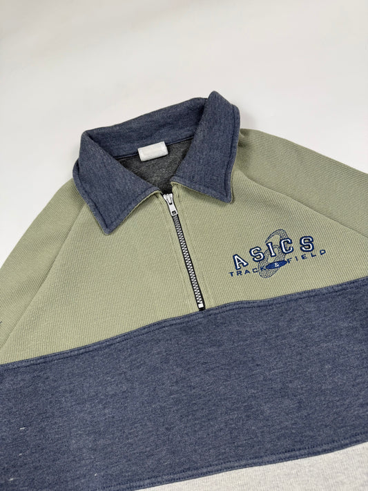 Vintage 90s Asics colour block quarter zip sweatshirt (XL)
