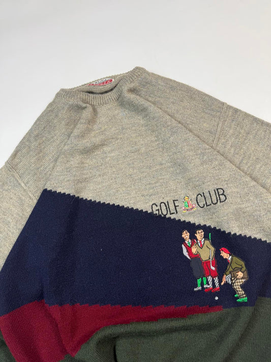 Vintage 90s Abstract golf wool knit sweater (XL)