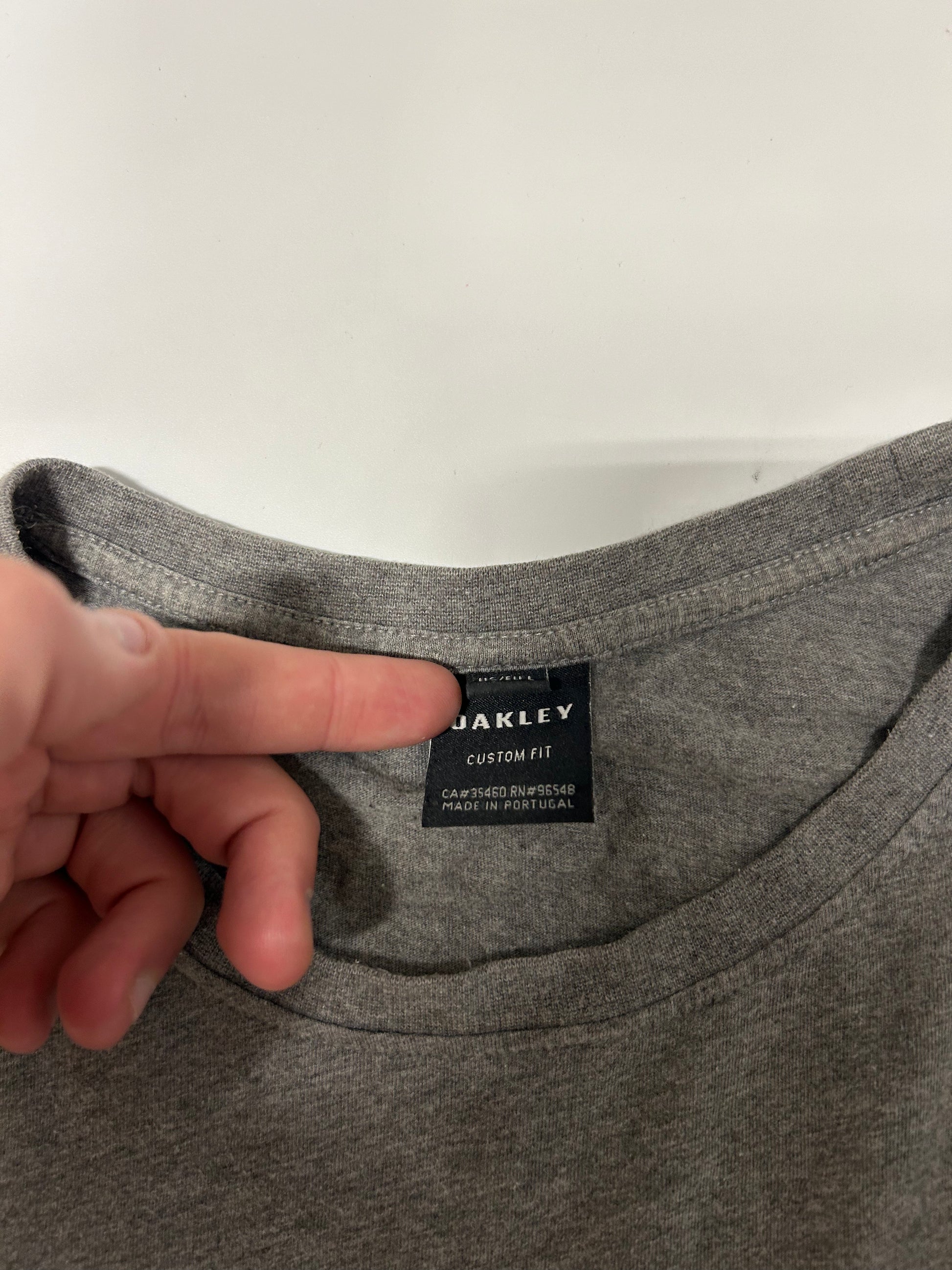 -Oakley spell out across front