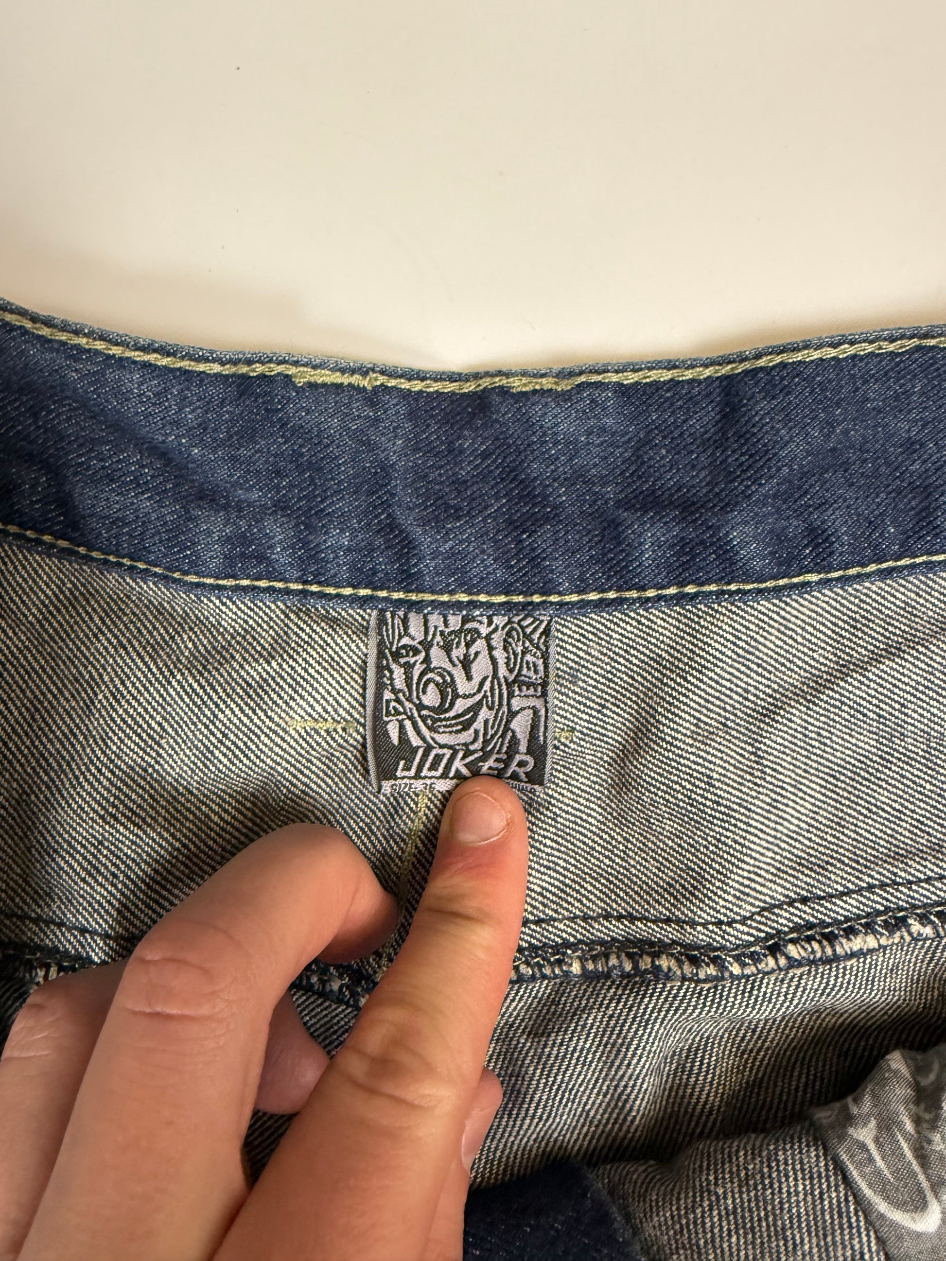-Joker embroidered spell out back pocket logo